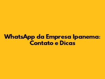 WhatsApp Da Empresa Ipanema: Contato E Dicas