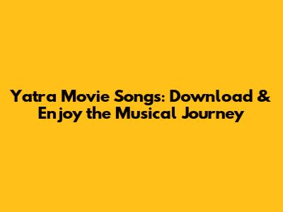 Yatra Movie Songs: Download & Enjoy The Musical Journey