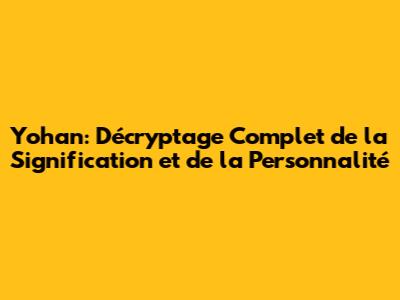 Hey les amis ! Vous vous êtes déjà demandé ce qui se cache derrière le prénom Yohan ? Si oui, vous êtes au bon endroit ! On va explorer ensemble la signification profonde de ce prénom, les traits de personnalité qui lui sont associés, et même quelques petites choses surprenantes. Préparez-vous à une plongée fascinante dans l'univers de Yohan, un prénom riche en histoire et en caractère. Accrochez-vous, ça va être passionnant ! On va décortiquer tout ça, des origines bibliques jusqu'à l'impact sur la personnalité. Alors, prêt à percer les mystères de Yohan ? C'est parti !